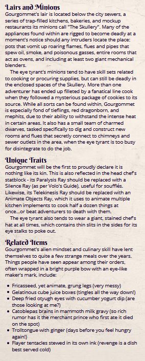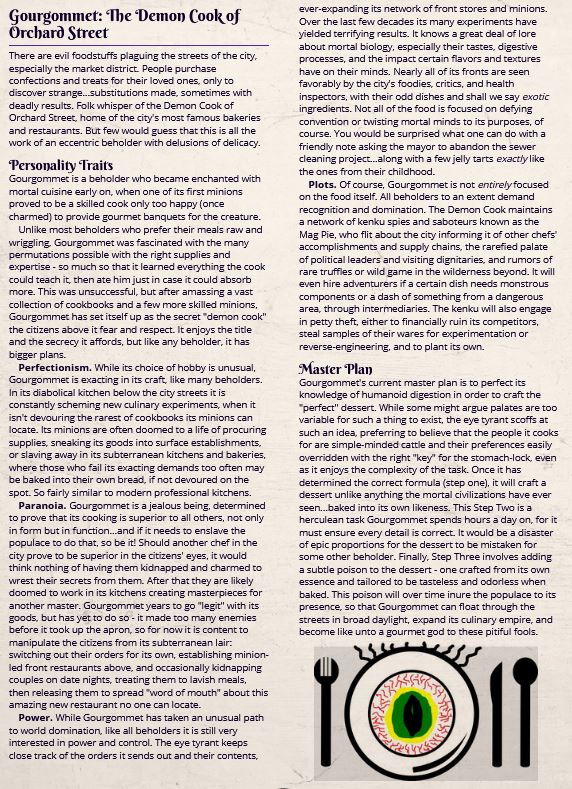 Written by ayetyrantOctober 3, 2020 Ocular October: Beholder Biography – the Demon Cook Gourgommet! Share this: Click to share on X (Opens in new window) X Click to share on Facebook (Opens in new window) Facebook Like Loading... Related Leave a comment Cancel reply Δ